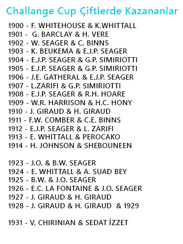 Osmanlı’nın Wimbledon’ı olarak benimsenen “Challenge Cup”, her yıl merakla beklenilen bir tenis turnuvası haline gelmişti. 1978 yılında “1001 Temel Eser” serisinden yayınlanan Dorina L.Neave’in kaleme aldığı “Eski İstanbul’da Hayat” adlı kitapta bu konu şöyle anlatılıyor.